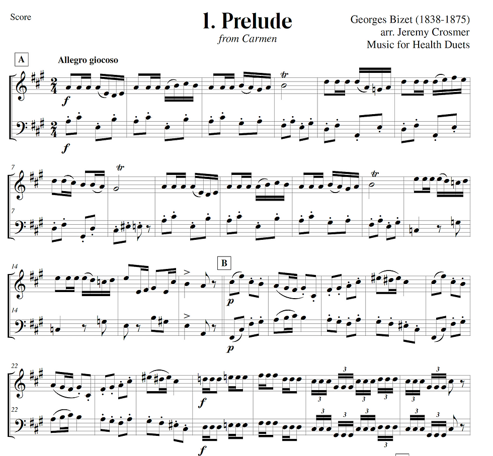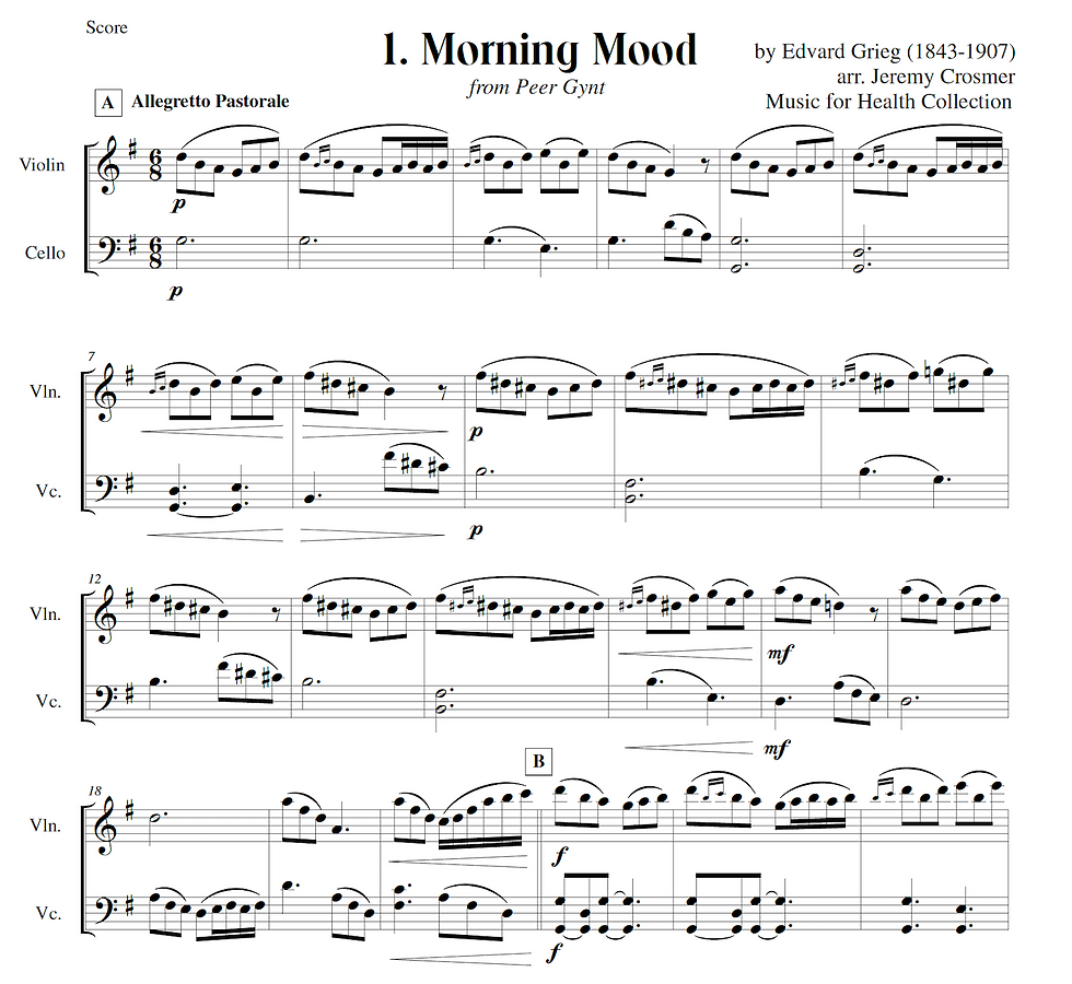 Music for Health duets were designed to be performed in hospital lobbies, cancer centers, and in assisting licensed Music Therapists in neuro-rehab centers. They are short and recognizable, and have a lot of character.